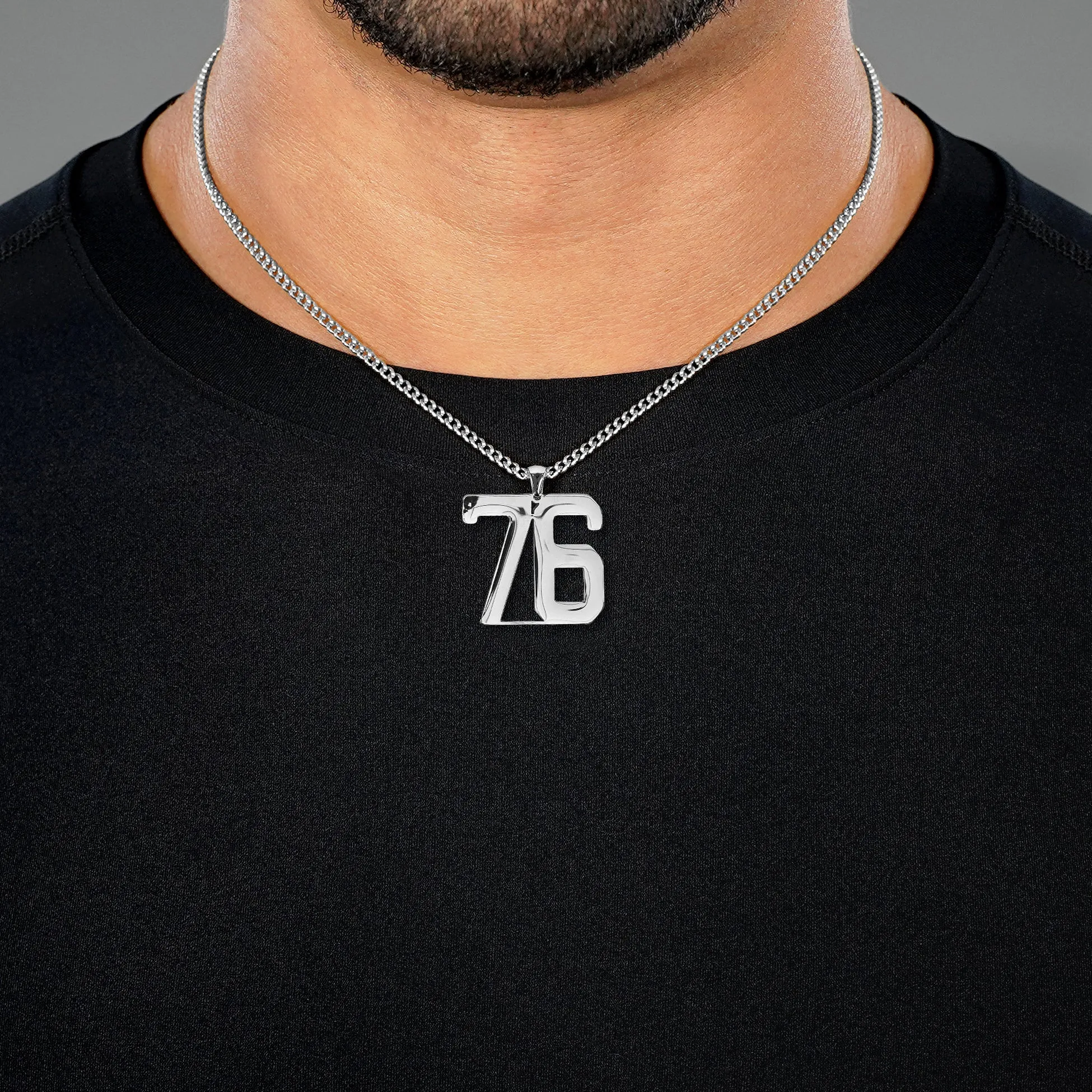 76 Number Pendant with Chain Necklace - Stainless Steel