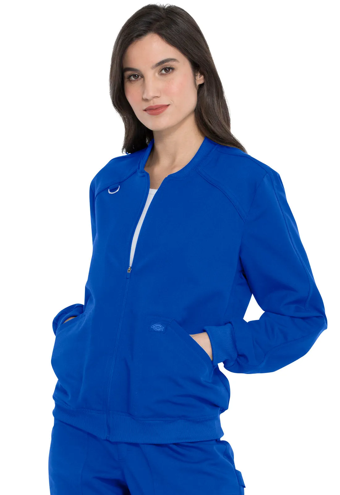 Zip-up jackets are versatile and fun and give a polished look to your outfit. Dickies balance scrub jacket adds a stylish and elegant view to your attire while shielding you from the cold. Zip-up jackets are usually easy to wear and convenient to take off when you are present in busy environments. You can modify the zipper according to your preference to match your outfit's styling. It is easy to adjust the ventilation while providing a secure and comfortable closure from the cold.