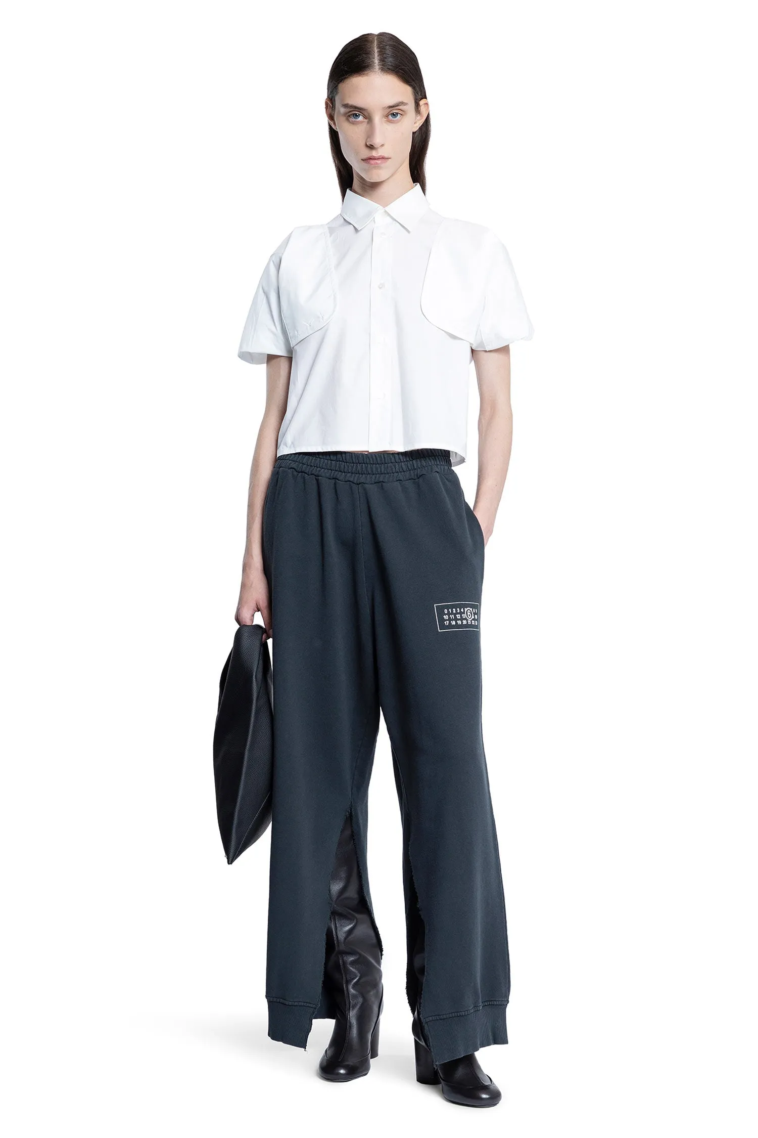 dark bluewashed cotton jerseyelastic waistband with drawstringsfront numeric logo printside pocketsinternal raw-edge leg splitsback stitch monikerribbed hemswide legloose fit