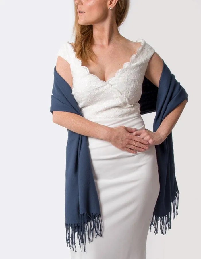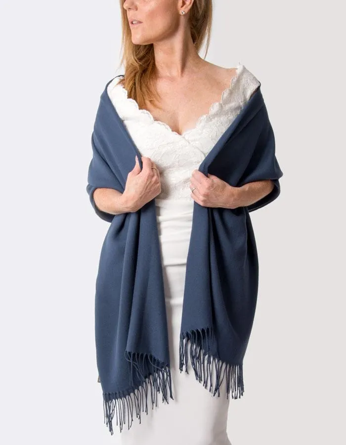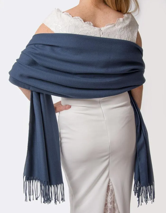Moonlight Blue Wedding Pashmina A perfect wedding pashmina for brides, bridesmaids and wedding guest outfits. Available in over 40 stunning colours.
