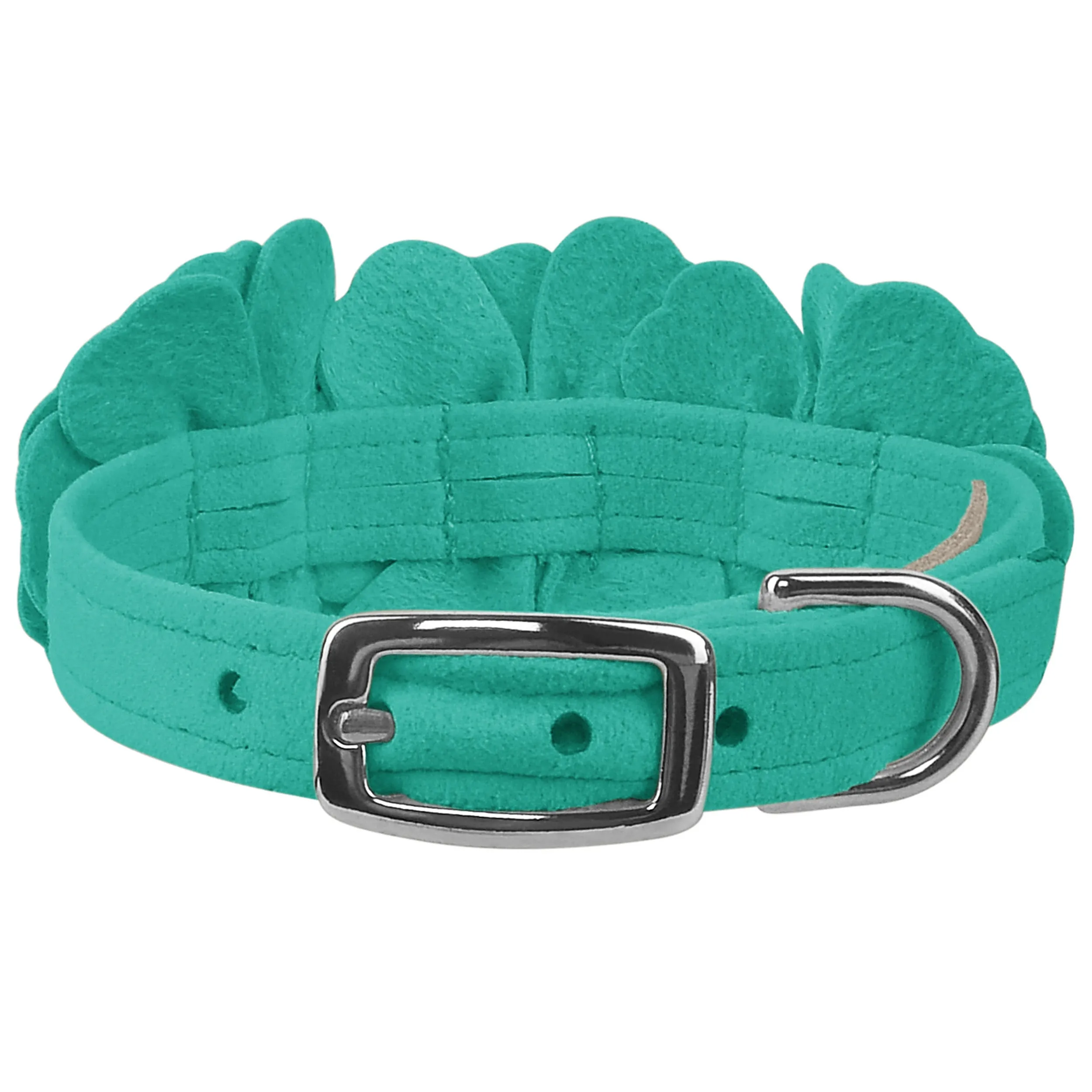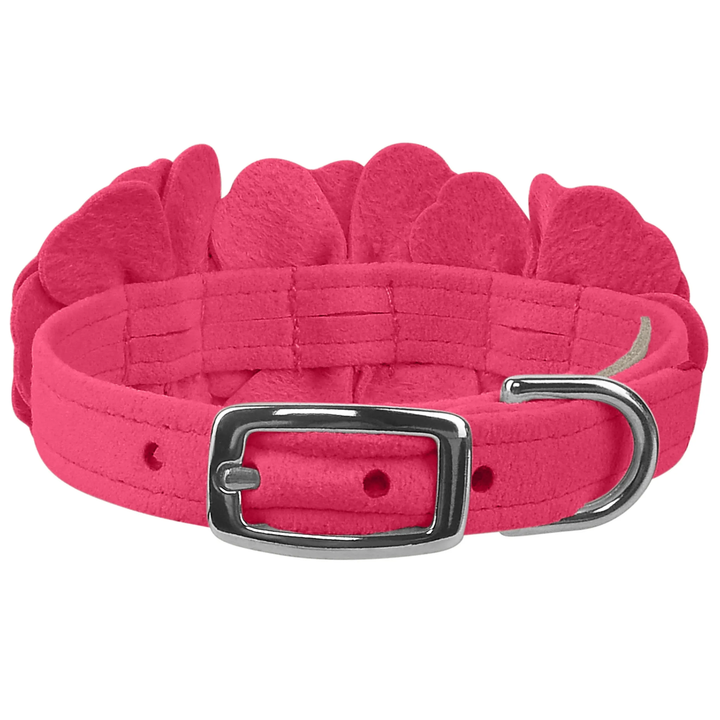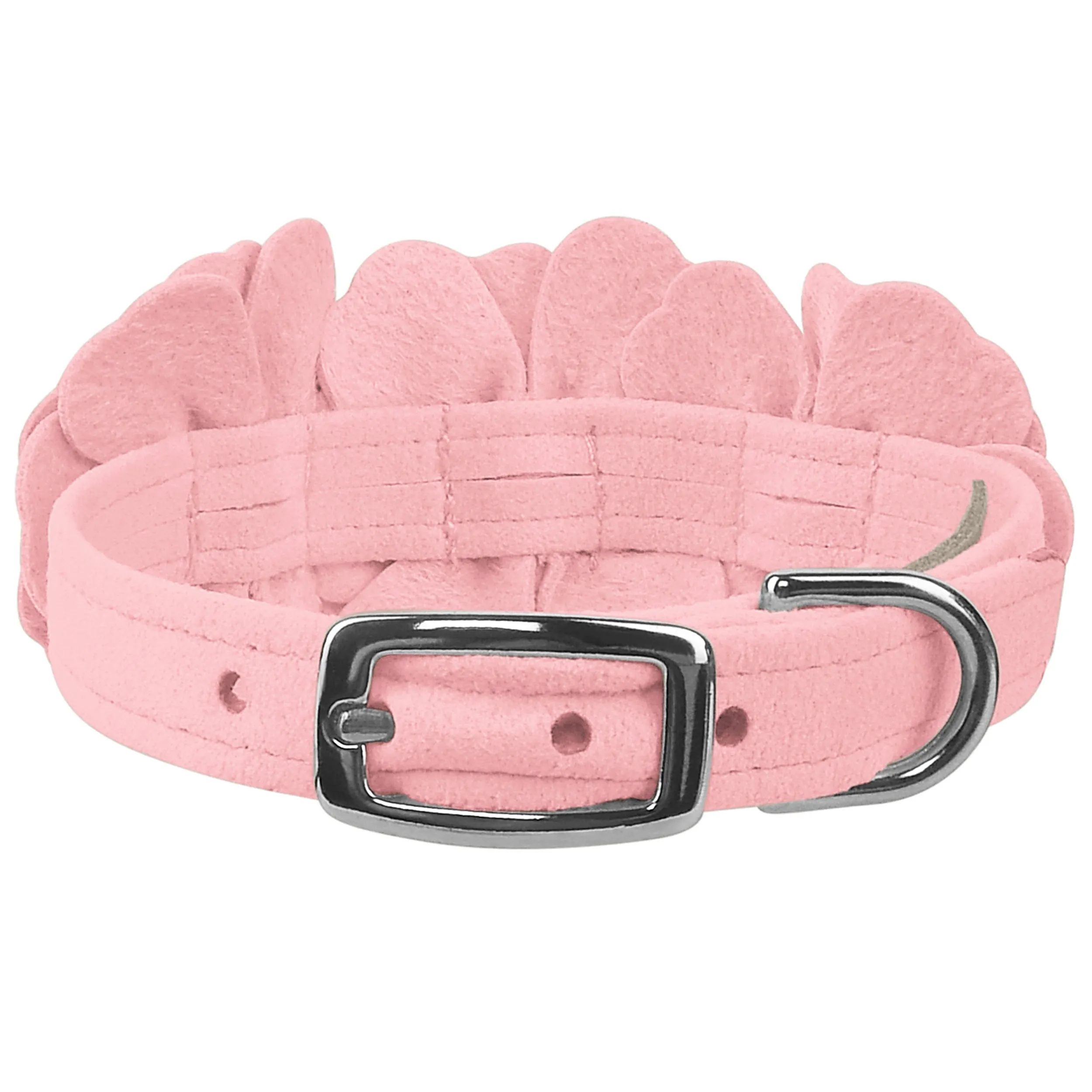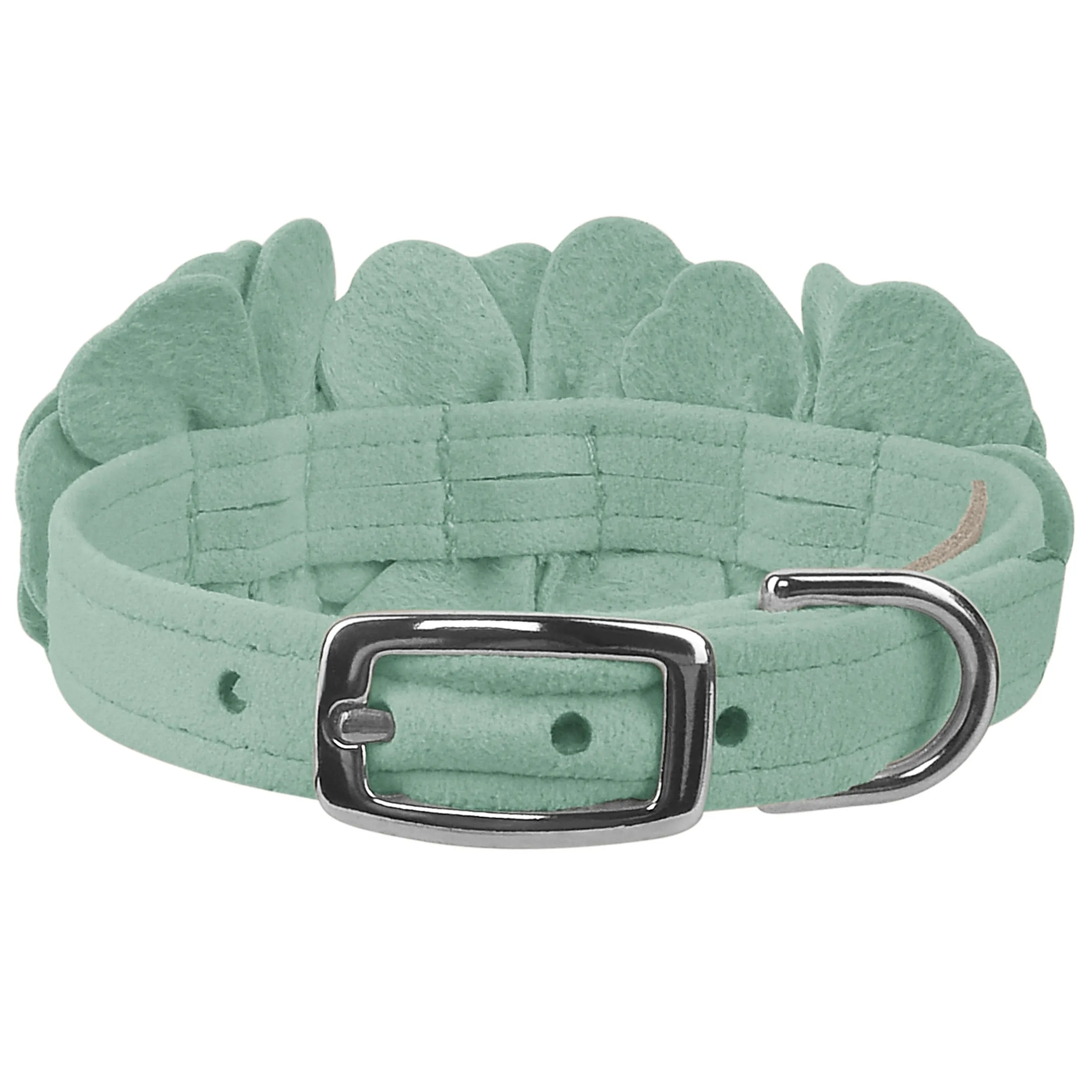 This dog collar has a premium look and feel, while being easy for you to maintain. Made from Ultrasuede® fabric with the soft texture and feel of premium suede. Ultrasuede® offers the highest grade of durability, making this collar resistant to stains and discoloration. It is even machine washable! Collar width is ½”. We recommend your dog should always be walked with a harness. Our collars are designed for ID tags, charms and for decoration, they are NOT designed for pulling dogs. Manufactured in the USA.