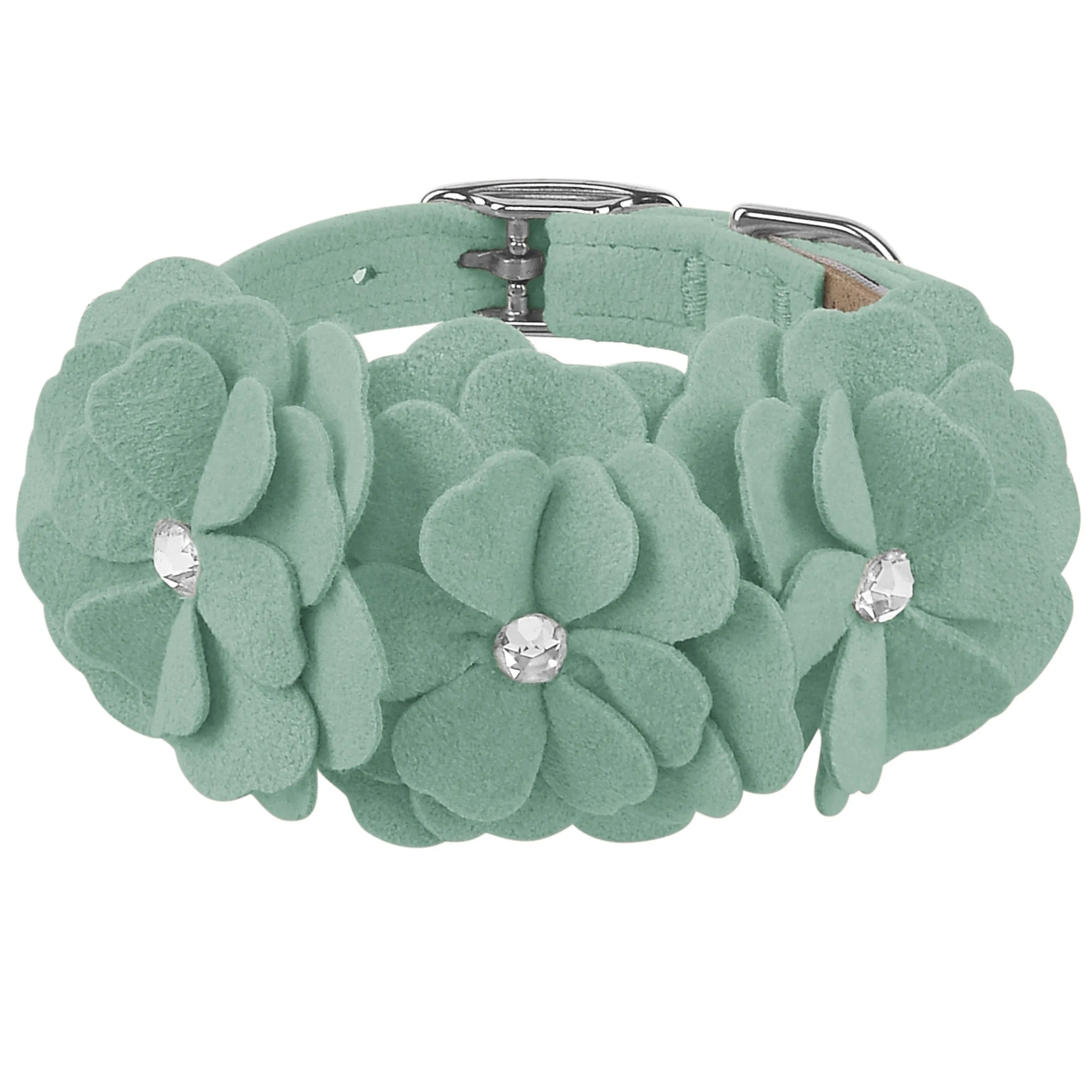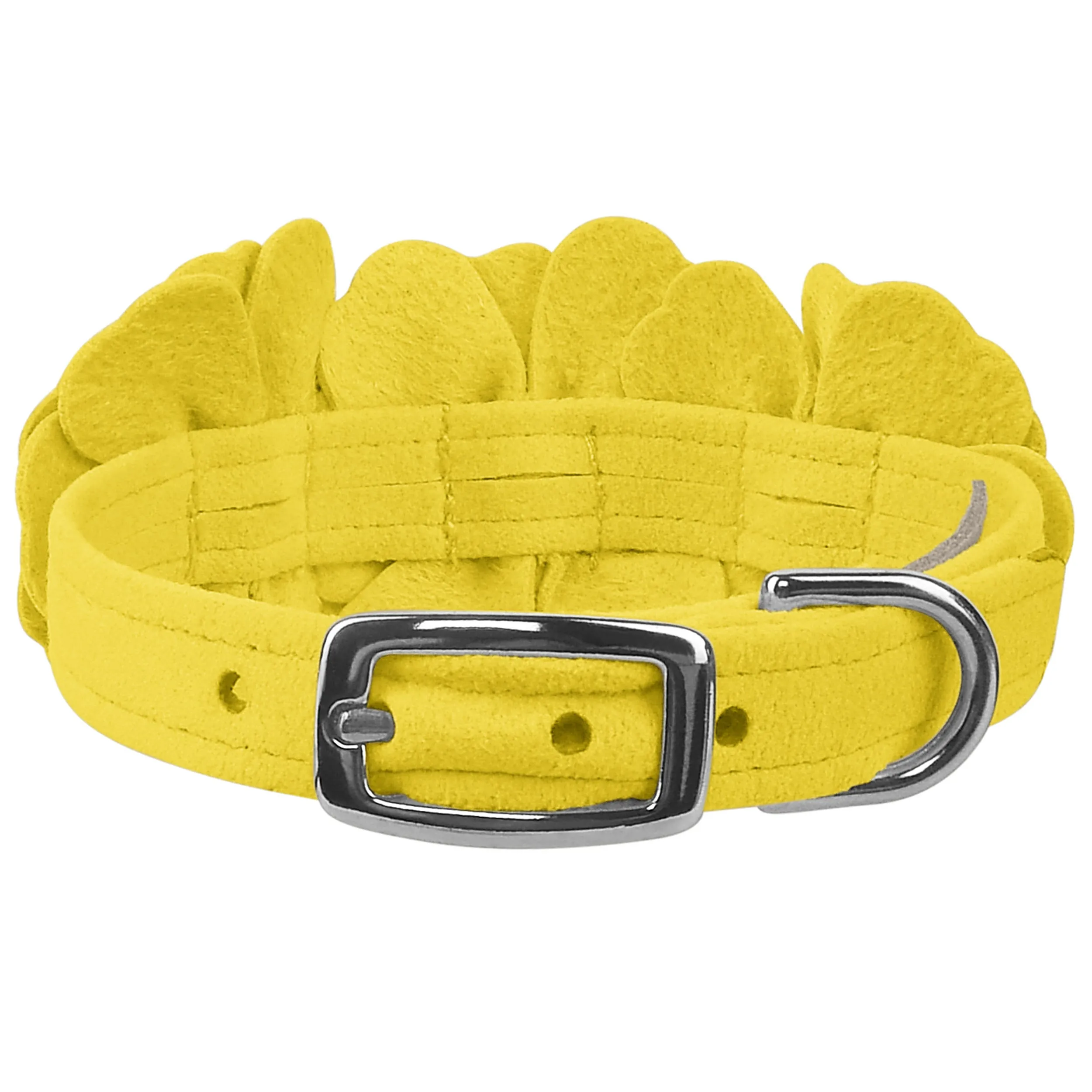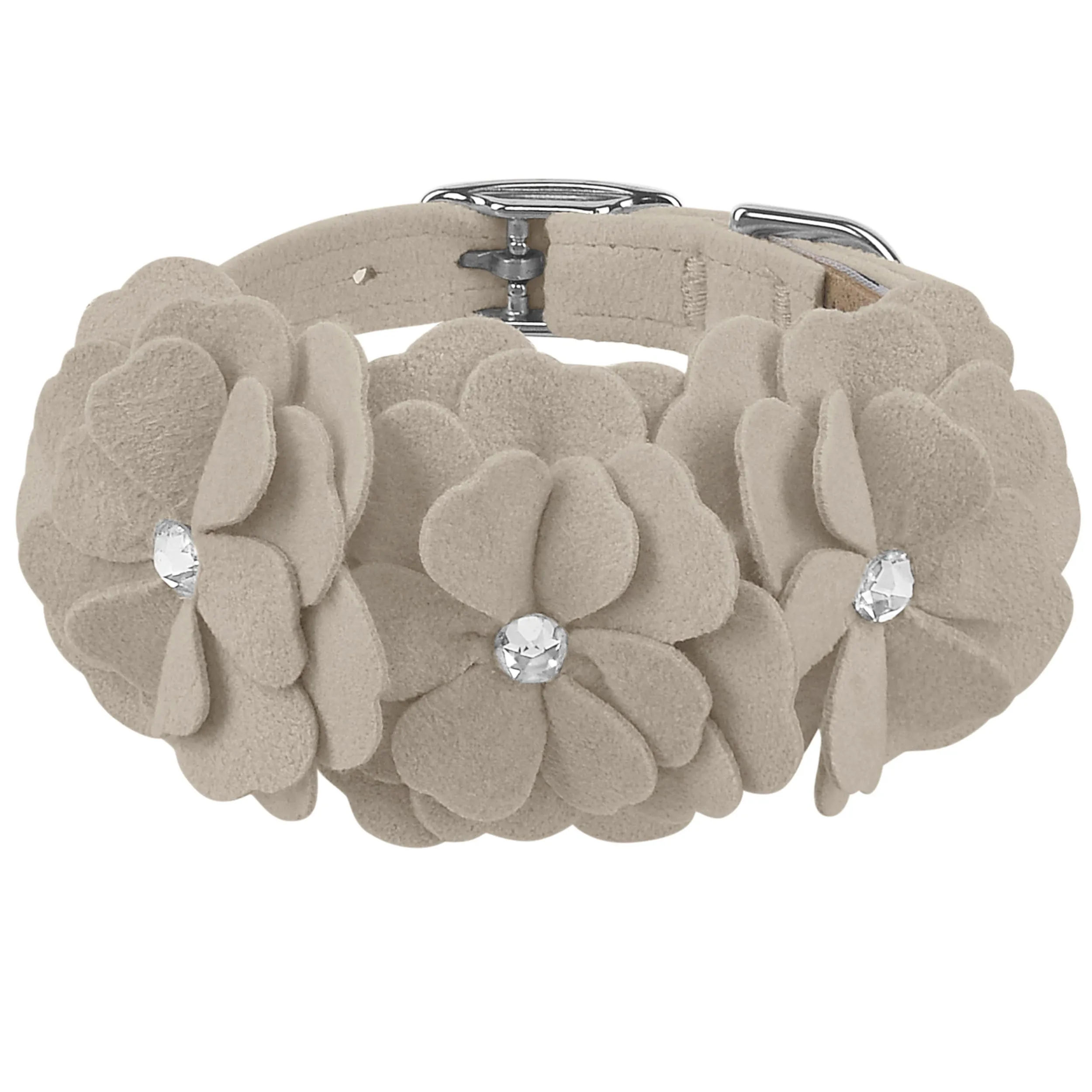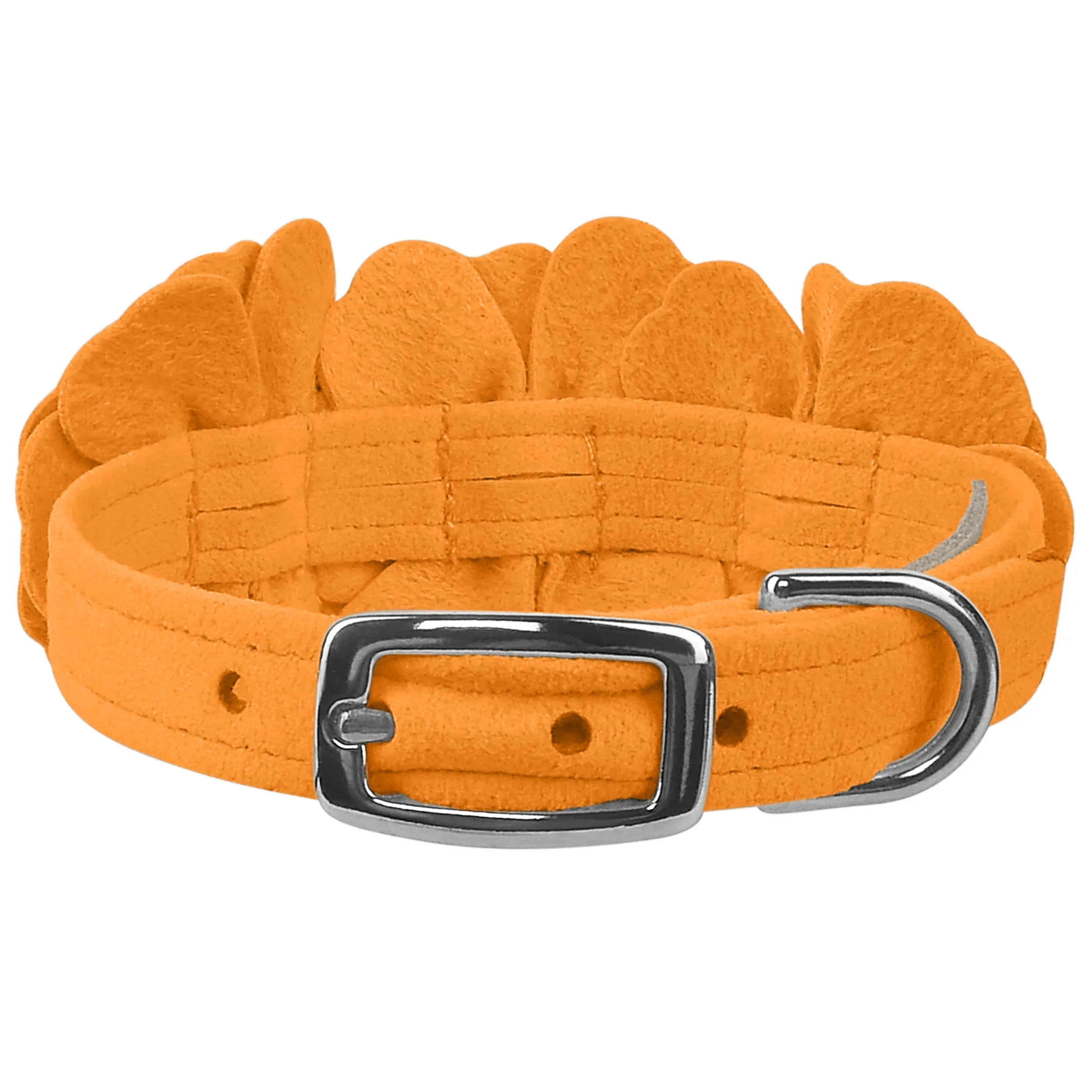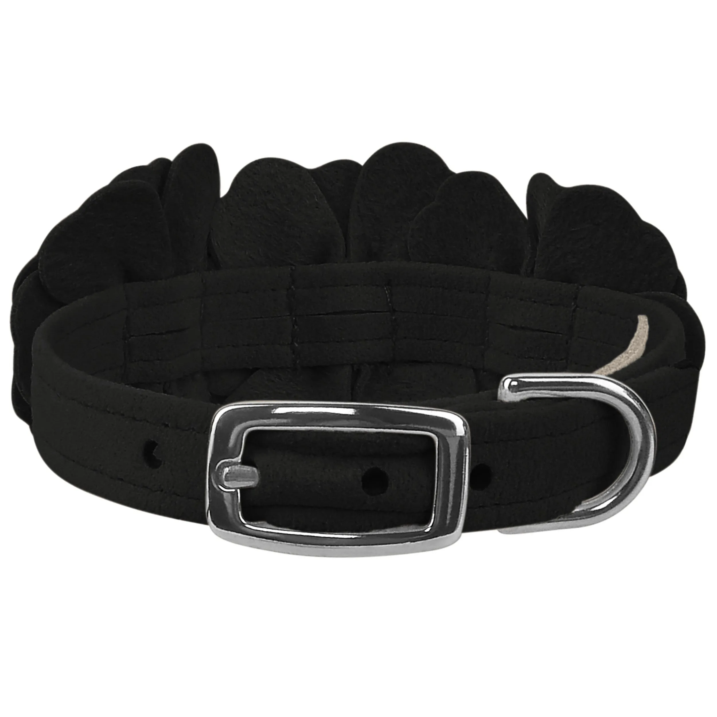 This dog collar has a premium look and feel, while being easy for you to maintain. Made from Ultrasuede® fabric with the soft texture and feel of premium suede. Ultrasuede® offers the highest grade of durability, making this collar resistant to stains and discoloration. It is even machine washable! Collar width is ½”. We recommend your dog should always be walked with a harness. Our collars are designed for ID tags, charms and for decoration, they are NOT designed for pulling dogs. Manufactured in the USA.
