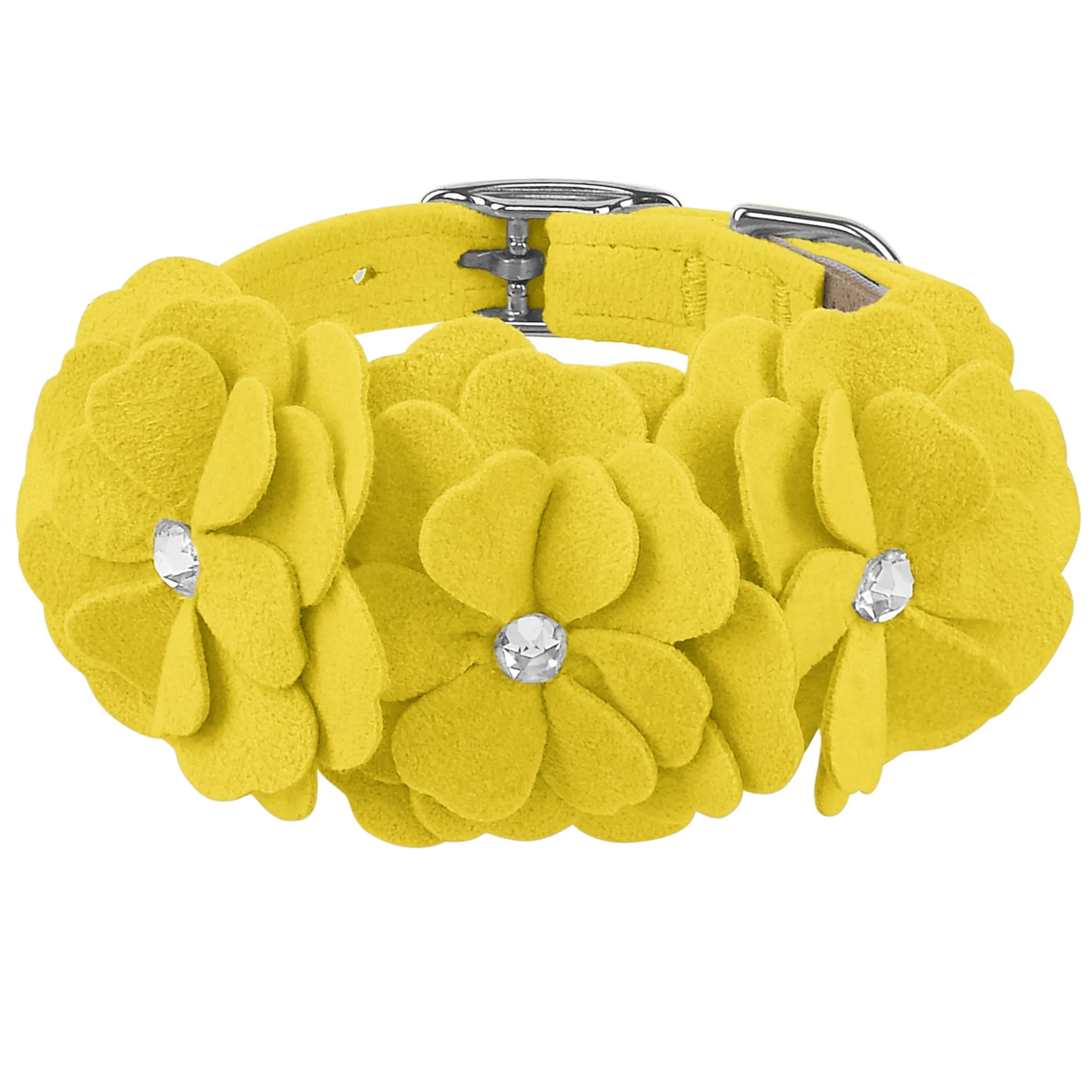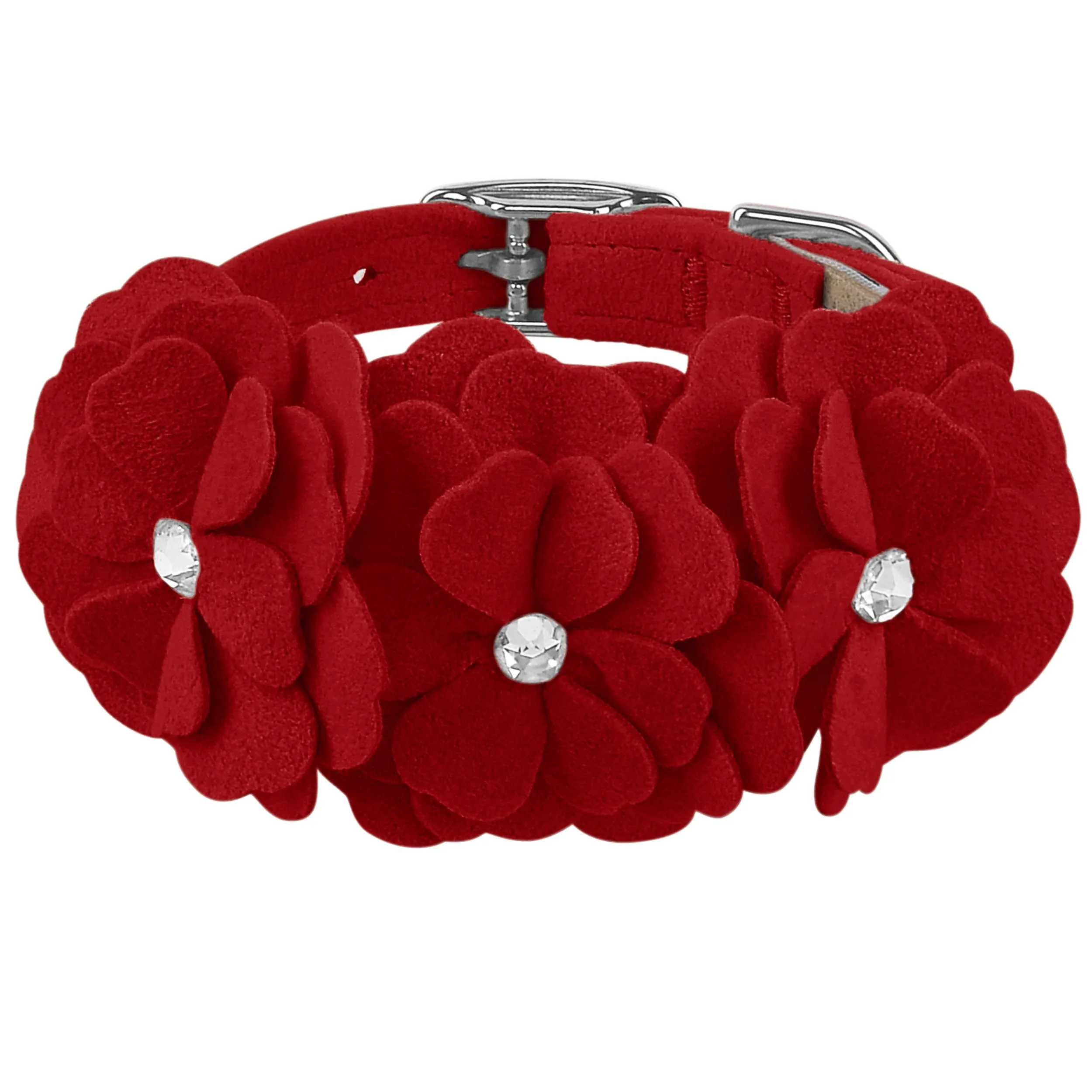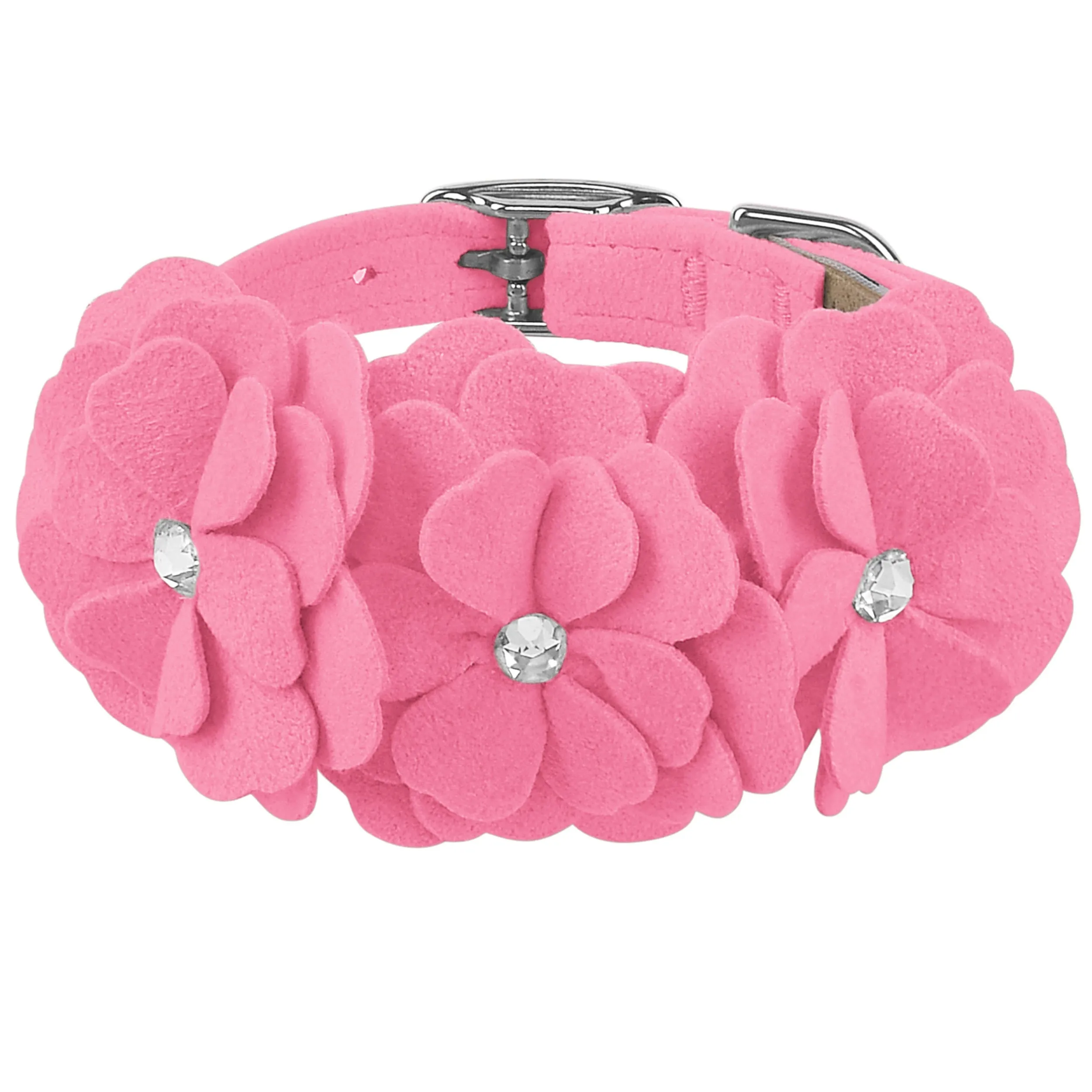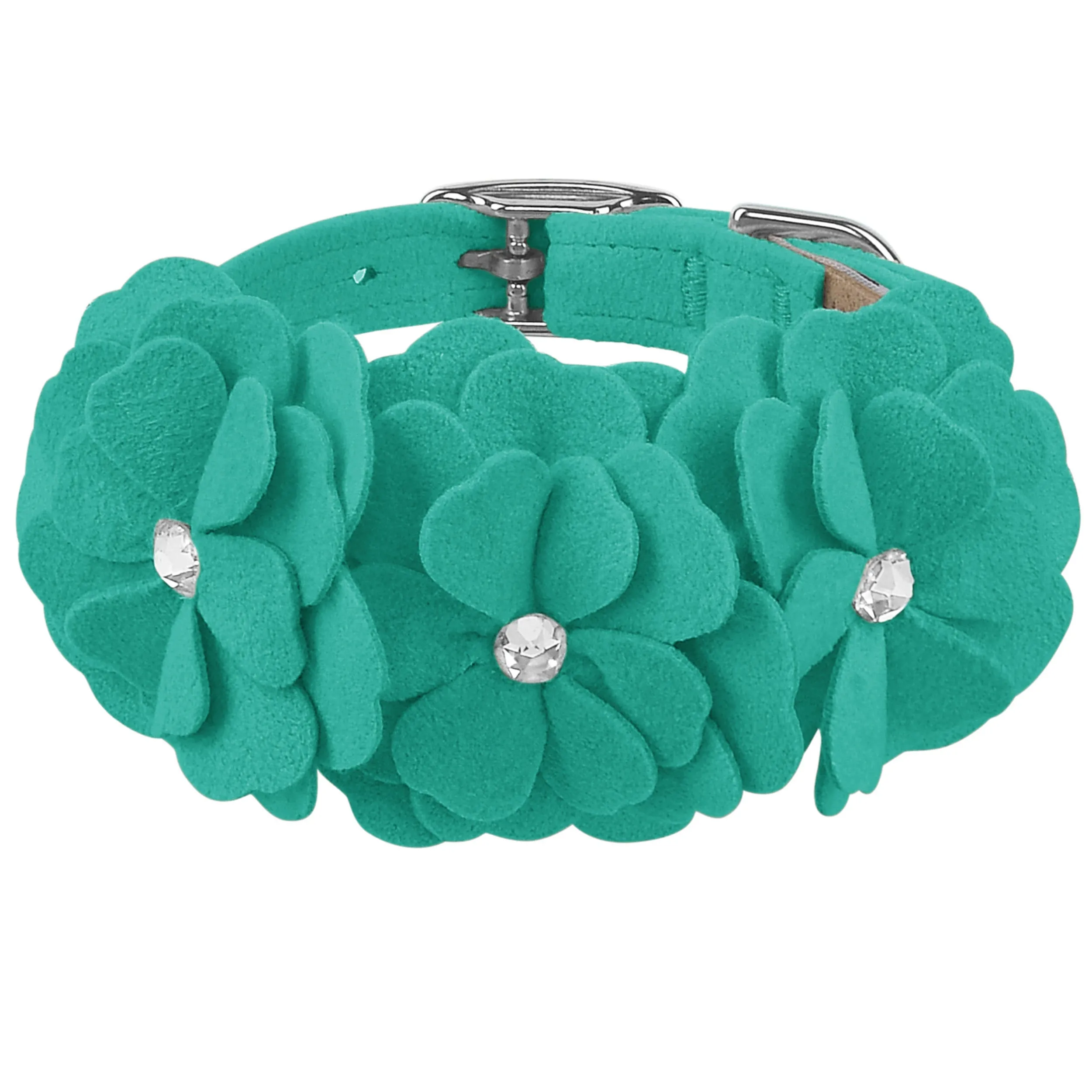 This dog collar has a premium look and feel, while being easy for you to maintain. Made from Ultrasuede® fabric with the soft texture and feel of premium suede. Ultrasuede® offers the highest grade of durability, making this collar resistant to stains and discoloration. It is even machine washable! Collar width is ½”. We recommend your dog should always be walked with a harness. Our collars are designed for ID tags, charms and for decoration, they are NOT designed for pulling dogs. Manufactured in the USA.